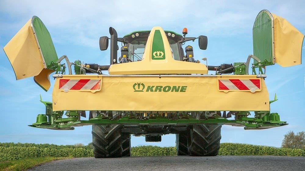 Yeni Krone EasyCut F 400 CV Fold koşullandırıcılı diskli ot biçme makinası 4 m iş genişliğiyle, traktör ön/arkasına asma olarak takılabilen kelebek gibi iki taraftan katlanma özelliğinden dolayı tek ve başka makinalarla kombinasyonlarında düz, eğimli arazilerde ve virajlarda önemli avantajlar sağlamaktadır. Biçilmiş veya biçilmemiş ot şeritlerini ezme veya biçilmemiş ot şeridi bırakma gibi istenmeyen durumlar önlenmektedir. Yol durumunda iki taraftaki dış biçme disklerinin geriye doğru katlanmasıyla 3 m’den daha az bir taşıma genişliğine sahip olmaktadır. Yol güvenliğinin yanı sıra traktör kabininden hidrolik sistemle yol/iş konumuna dönüştürme önemli bir konfor sağlamaktadır.
