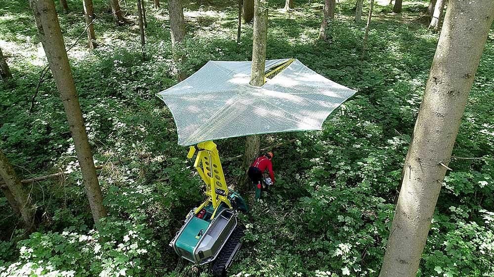 Özellikle iklim değişikliğinin bir sonucu olarak ormanlarda artan kurumuş ağaç veya dalları bakımından bu koruyucu örtü orman çalışmalarında iş güvenliğine ciddi katkı sağlamaktadır. Traktöre bağlanan koruyucu örtülü bu çözüm, orman işçileri için iş güvenliğini arttırmada etkili olup ucuz bir seçenek sunmaktadır.