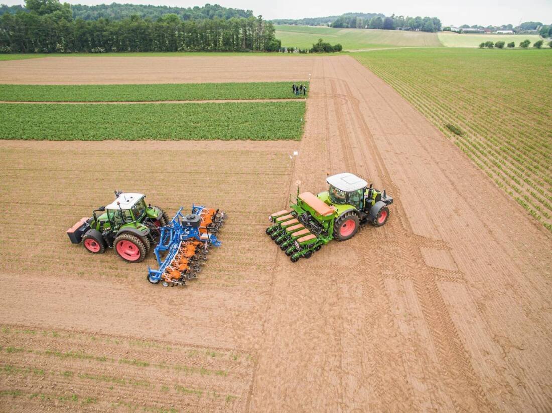 Tüm mahsul bitkileri, CRF konseptinde 50 cm’lik bir sıra aralığında yetiştirilir, böylece tahıllar çift sıra halinde ekilir. Mahsul rotasyonuna bağlı olarak, sıra, örneğin bir önceki alttaki mahsulün agronomik etkisinden yararlanmak için 25 cm kaydırılabilir. Ekim, normalde sıra odaklı gübreleme ile birlikte yapılır. Bitki koruma, öncelikle sıraya özel olarak sıra üzerinde bant uygulaması ve daha sonraki büyüme aşamalarında Dropleg sistemleri aracılığıyla uygulanır. Her geçiş, her zaman RTK-GPS ve kamera kontrolü aracılığıyla yüksek hassasiyetli izleme kılavuzluğu ile gerçekleştirilir.