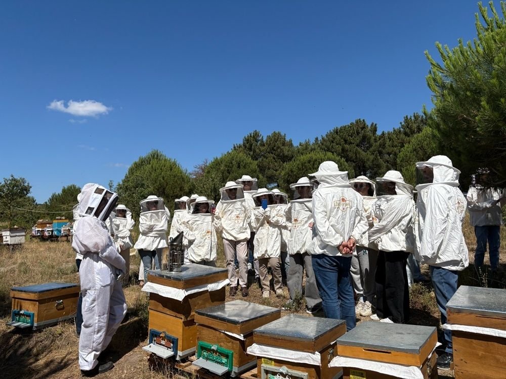 Saha ziyaretinin en dikkat çekici hikâyesi ise, Ayşe Akkaya’dan geldi. Yıldız Teknik Üniversitesi’nde Atom ve Moleküler Fizik ile İş Sağlığı ve Güvenliği alanlarında çift yüksek lisansı bulunan Akkaya, arıcılık mesleğine başlama hikayesini şöyle anlattı: “İkinci çocuğumun doğumu için bir süre yurt dışında bulundum. Türkiye’ye döndüğümde ise çocuklarıma daha fazla zaman ayırmak istediğime karar verdim ve bu nedenle kurumsal iş hayatıma ara verdim. Bu süreçte annem ve teyzemin arıcılıkla ilgilenmeye başladığını öğrendim. Başlangıçta onlara sadece destek oluyordum. Ancak zamanla arıcılığın doğayla iç içe, üretime dayalı yapısı beni derinden etkiledi ve bu işe başlamaya karar verdim. Özellikle teyzem, benim için çok güçlü bir rol model oldu. Tecrübesi, disiplini ve sabrıyla bana yol gösterdi. Bugün ailemle birlikte İstanbul Aydos Ormanı’ndaki arılığımızda aktif olarak arıcılık yapıyor, özellikle arı sütü üretimine odaklanıyorum.”