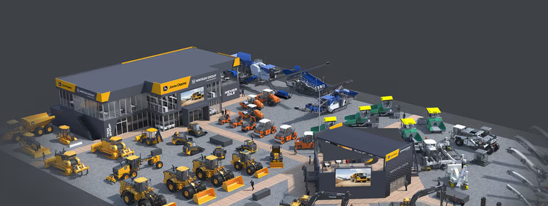 - 1 cohesive booth showcasing the latest machines and technologies from John Deere and the Wirtgen Group.