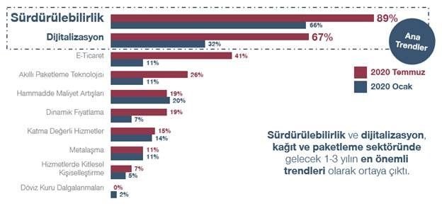 Son 5 yılda kağıt ve ambalaj sektörü için en önemli iki trend dikkat çekiyor: Sürdürülebilirlik ve Dijitalleşme. Gerçekleştirdiğimiz projeler ve sektörün önemli oyuncularının katıldığı araştırmalarımızda özellikle bu trendlerin öneminin giderek arttığını ve önümüzdeki 3 yıl içerisinde daha da kuvvetlenerek üreticilerin ürün yönetimi, değer zinciri, satış ve fiyatlandırma süreçlerine direkt olarak etki edeceğini ön görüyoruz. Olağan gidişata ek olarak pandemi (özellikle dijitalleşmede) bu iki trendin yaygınlaşmasında ve hızlanmasında önemi rol oynuyor. Peki şirketler pandemi ile hız kazanan sürdürülebilirlik ve dijitalizasyon trendlerinin etkilerine nasıl adapte olabilirler? Trendler ile değişen satın alma davranışları nasıl fırsata çevrilebilir?