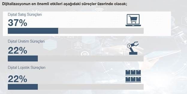 Gerçekleştirdiğimiz sektör araştırmaları dijitalleşmenin en çok etkileyeceği öngörülen ana süreç, beklenenin aksine akıllı paketleme gibi inovatif çözümler yerine satış süreçleri olarak değerlendiriliyor. Bunu ek olarak dijital dönüşüm yatırımı yapan şirketlerin sadece çeyreği bu yatırımlarından dönüş alabildiğini belirtiyor Dijitalleşme sürecini hem iç satış aktiviteleri hem de müşteri tarafında değerlendirmesi gereken şirketlerin alması gereken 3 temel adımı özetlemek gerekirse: