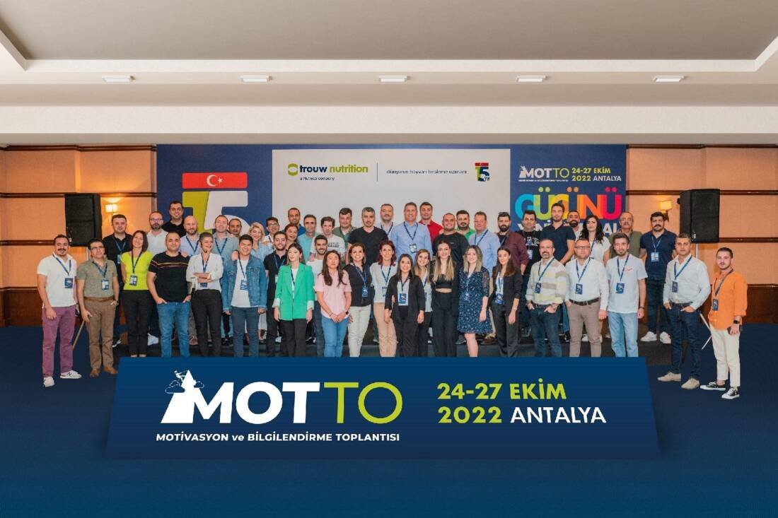 Dünyanın hayvan besleme uzmanı Trouw Nutrition, Türkiye’deki 15’inci yılını her yıl geleneksel olarak düzenlediği MOTTO toplantısında kutladı. Antalya Belek’te tüm ekibin katılımıyla gerçekleşen üç günlük etkinlikte verimli toplantılar ve keyifli etkinlikler birbirini izledi. Şirket 2023 yılı için belirlediği “Gücünü yenilikten al” mottosu doğrultusunda yeni hedeflerine emin adımlarla ilerlemeye devam edeceğinin altını çizdi.